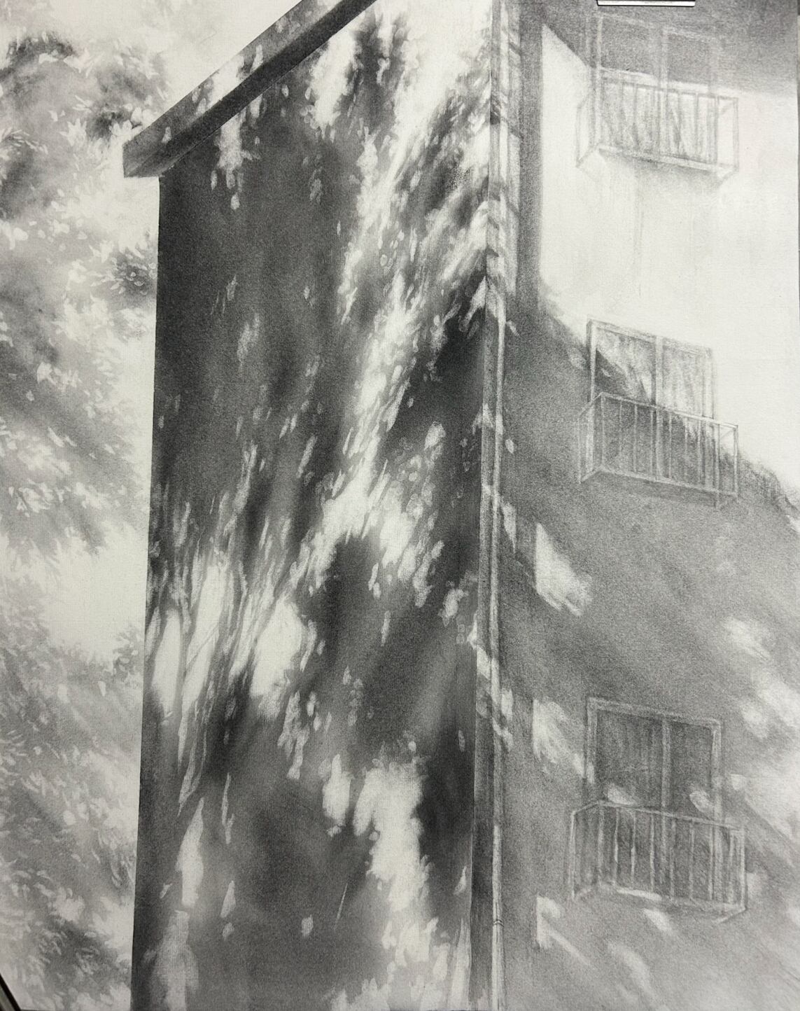 『夜勤明け』 木炭 ドローイング