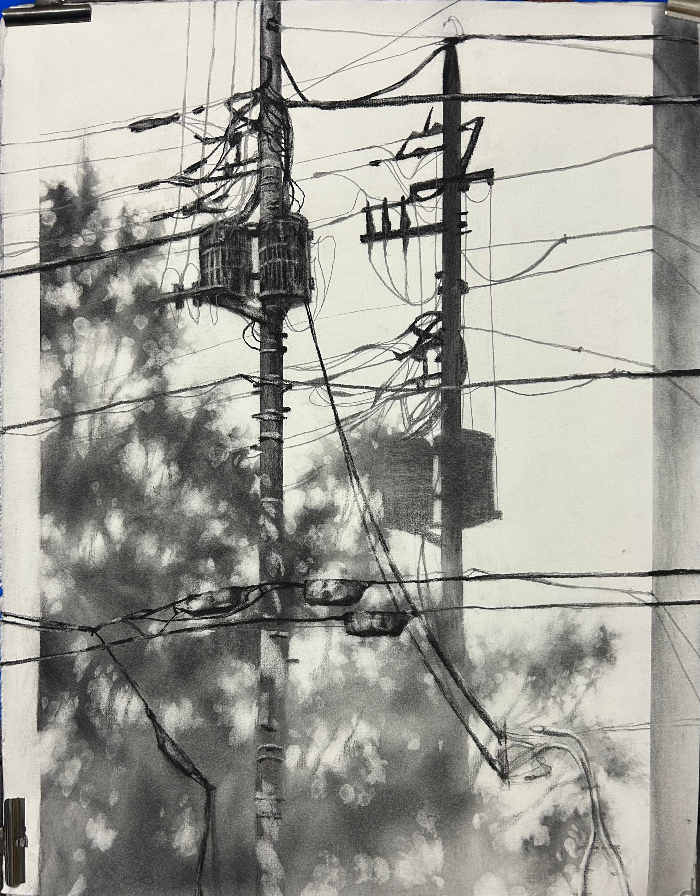 『電柱の影』木炭ドローイング